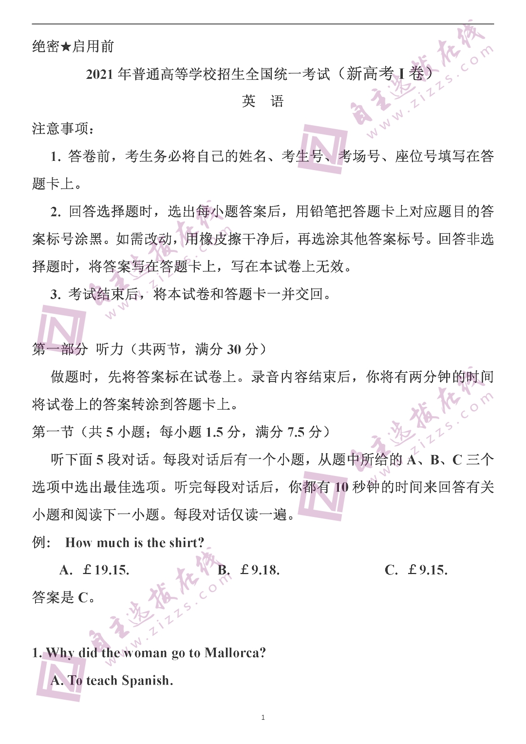 福建省2021年高考英语科目考试时间为6月8日下午15:00-17:00,试卷类型语目采用全国新高考1卷。自主选拔在线团队收集整理了福建省2021年高考英语真题,供大家参考。福建省2021年高考英语科目考试时间为6月8日下午15:00-17:00,试卷类型语目采用全国新高考1卷。为方便大家了解高考命题风格及难度,本文自主选拔在线团队收集整理了福建省2021年高考英语真题,供大家参考。