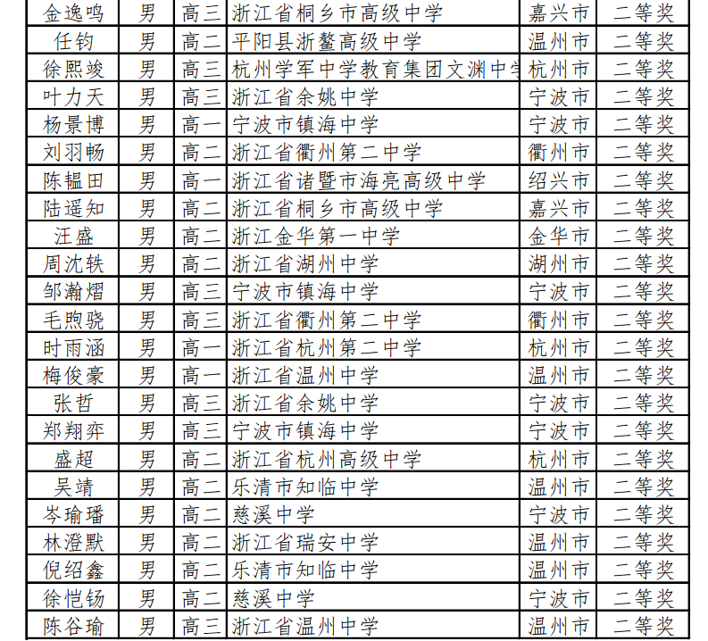 浙江2022年第38届全国中学生数学联赛获奖名单汇总2022-10-13