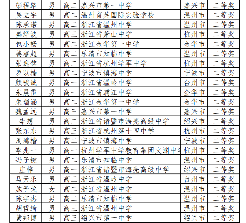浙江2022年第38届全国中学生数学联赛省二获奖名单已经正式公布,为方便大家查询,自主选拔在线团队将为大家整理了浙江2022年第38届全国中学生数学联赛省二获奖名单,供参考!