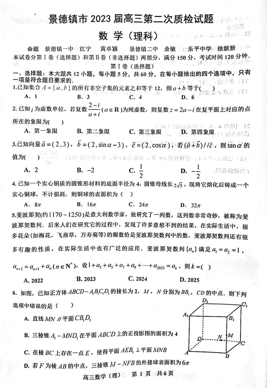 江西省景德镇市2023届高三第二次质量检测理科数学试题