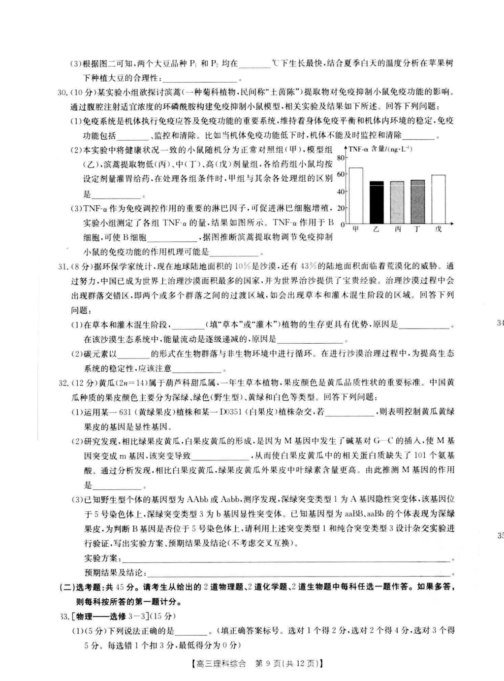 河南省新乡市2023届高三下学期入学测试多校联考理科综合试题