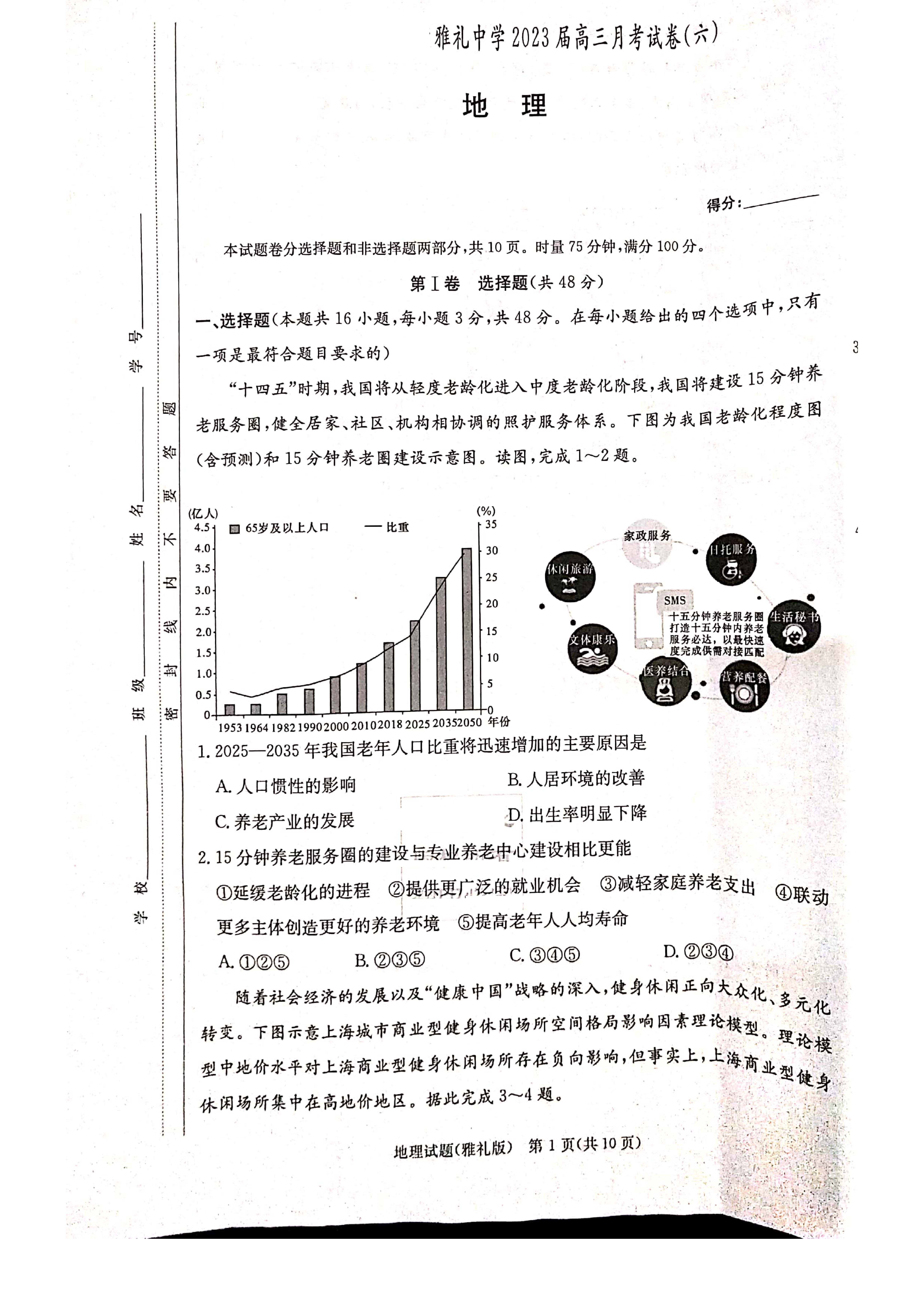 炎德英才大联考雅礼中学2023届高三月考试卷六地理试题