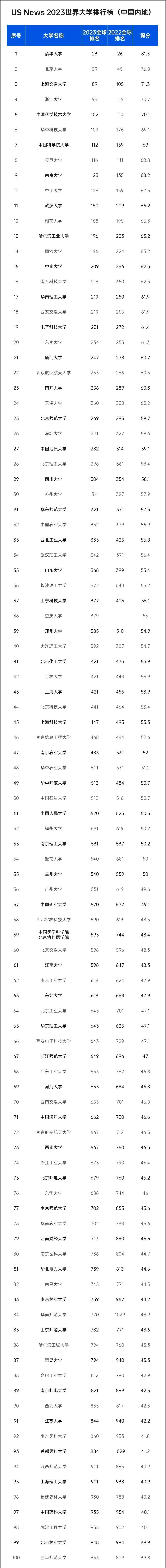该榜单是目前对中国高校最不友好的榜单,只有清华、北大、交大、浙大4所名校进入世界100强,而复旦、南大、中科大都难以入围。但相信在不远的将来,复旦、南大、中科大等校可以跟随4校的步伐,挺进世界100强。
