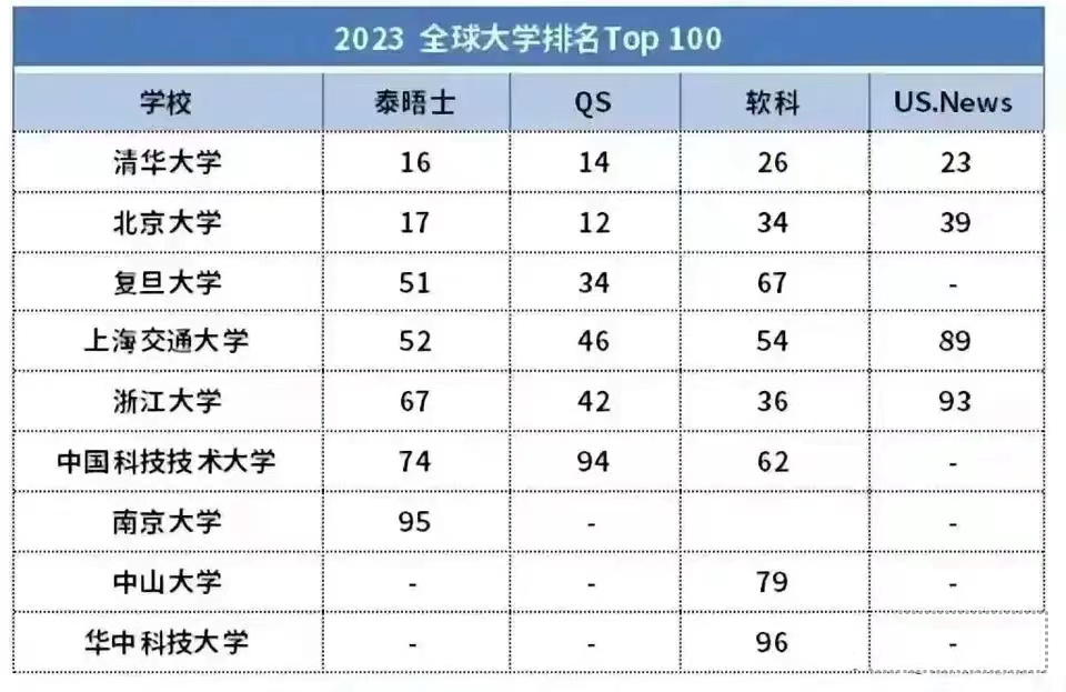 泰晤士榜单目前已有清华、北大、复旦、交大、浙大、中科大、南大7所顶尖名校跻身世界100强,未来南科大、武大、华科、川大等校则有望随后突破。