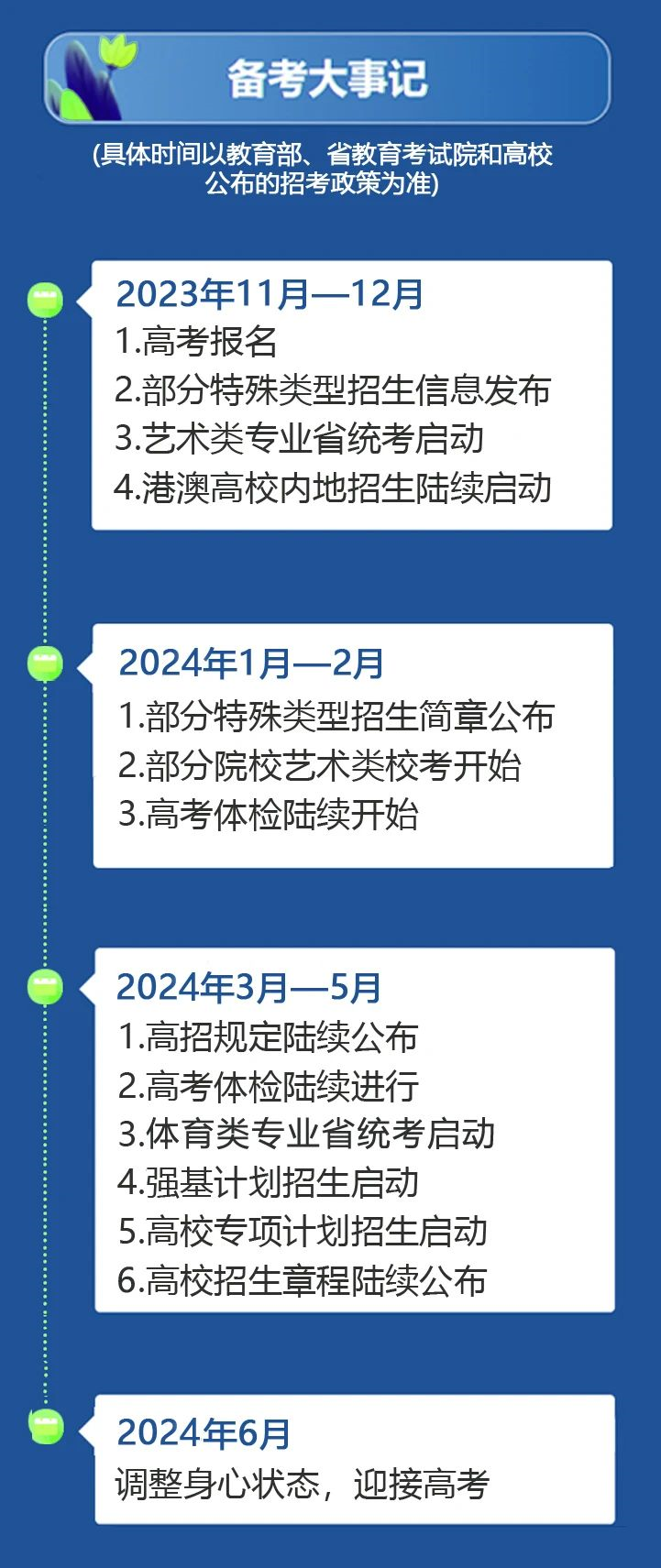 江苏省教育考试院刚刚发布2024年高考备考大事记,参加江苏省2024年高考的考生和家长请务必关注各事件时间,江苏学生圈为大家整理江苏省2024年高考备考大事记,一起看~