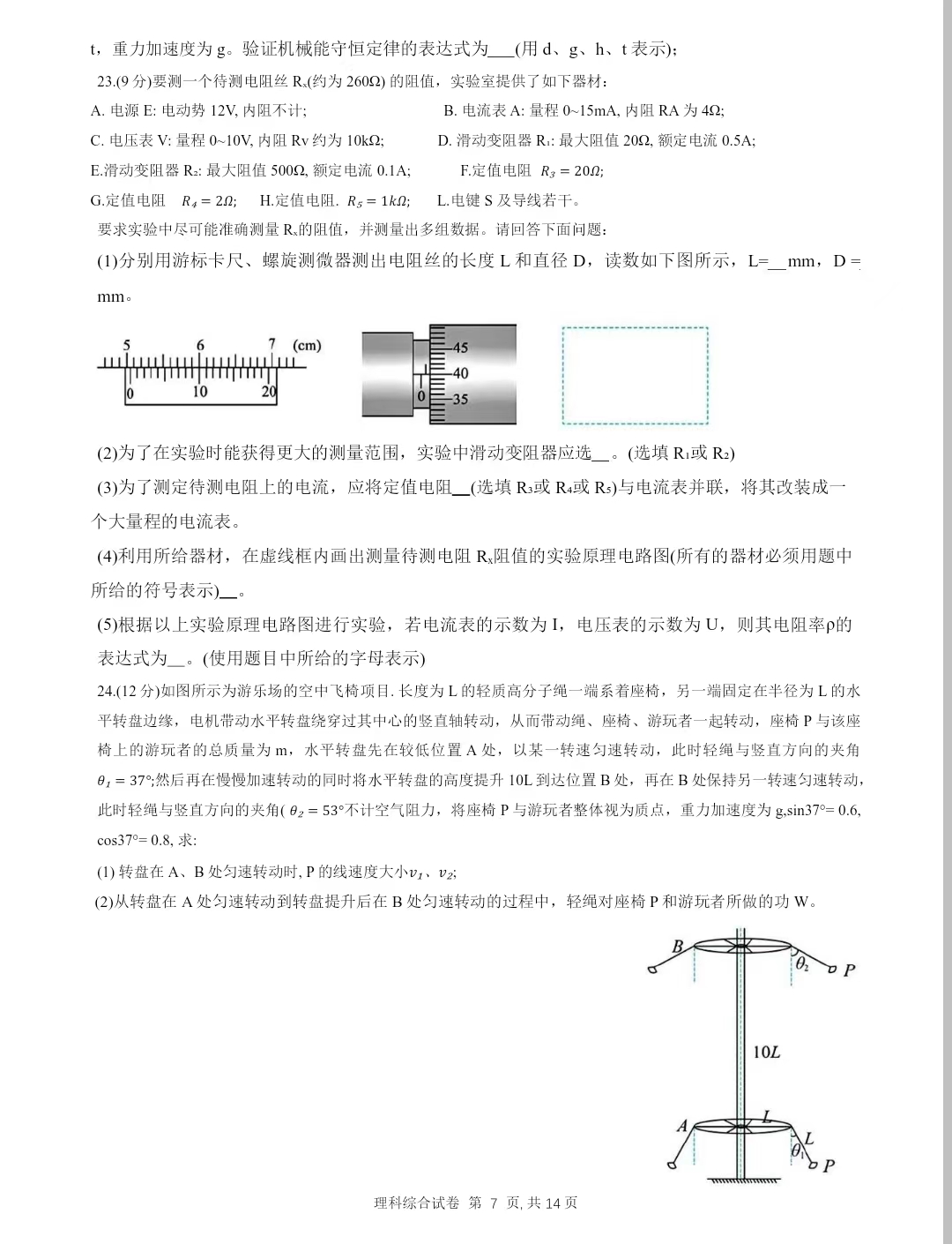 百强校四川成都第七中学2023-2024学年高三上学期12月理综试题