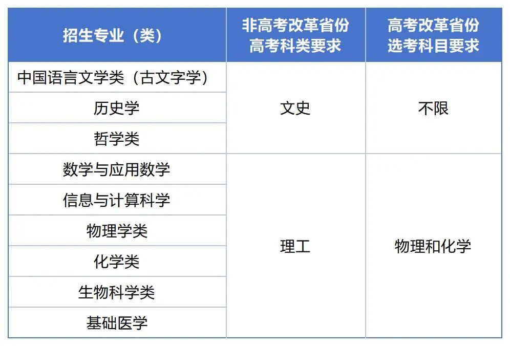 复旦大学强基招生专业共9个:汉语言(古文字学方向)、历史学、哲学类、数学与应用数学、信息与计算科学、物理学类、化学类、生物科学类、基础医学。