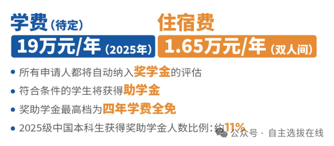 2025年学费为19万元/年,住宿费为1.65万元/年。