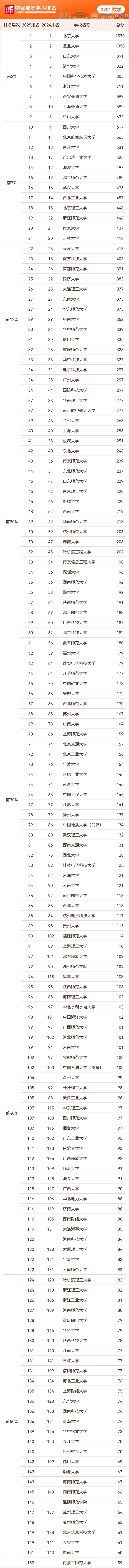 2025年软科中国最好学科排名——数学