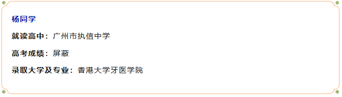 2026年港澳高校申报已经开始!该如何进行准备呢?今天为大家分享:来自广东省广州市执信中学的杨同学的特招备考经历。他平时成绩、竞赛成绩两开花,还获得了清华、北大夏令营的优秀营员,最后以合理的升学规划,成功被香港大学牙医学院录取!一起来看他是如何做的?