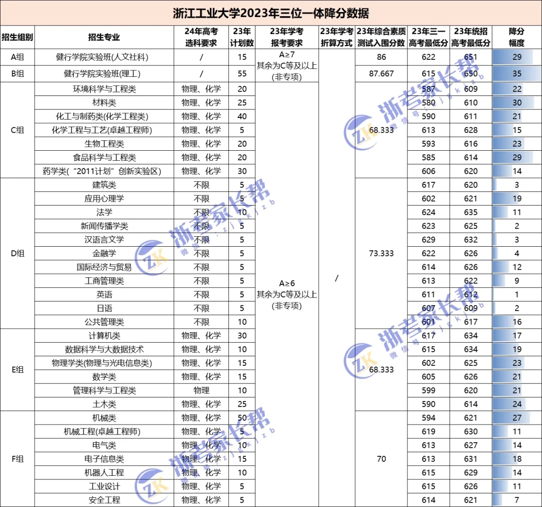 2023年通过三位一体报考浙江工业大学最多实现了35分的降分幅度!