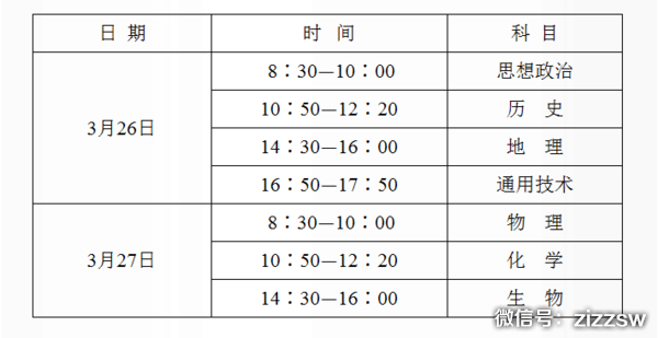本次开考思想政治、历史、地理、通用技术、物理、化学、生物等7科,各科考试内容及形式将依据《陕西省普通高中学业水平考试说明》执行。考试时间安排如下: