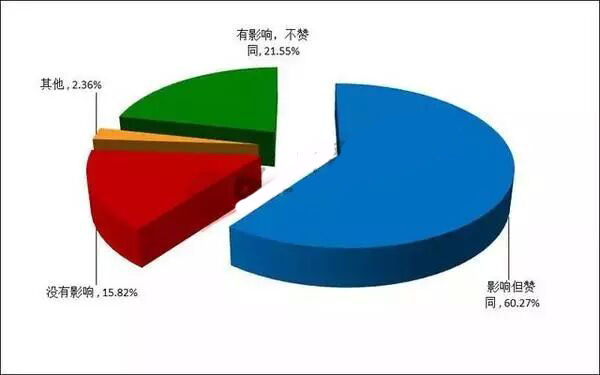 由图可知,超过半数以上的学生认为综合考评会在一定程度上影响高考的公平性,但表示赞同,可见这种影响仍在可允许的范围内。21.55%的学生认为有影响,而且影响会比较大,所以不赞同。只有少数学生认为没有影响。