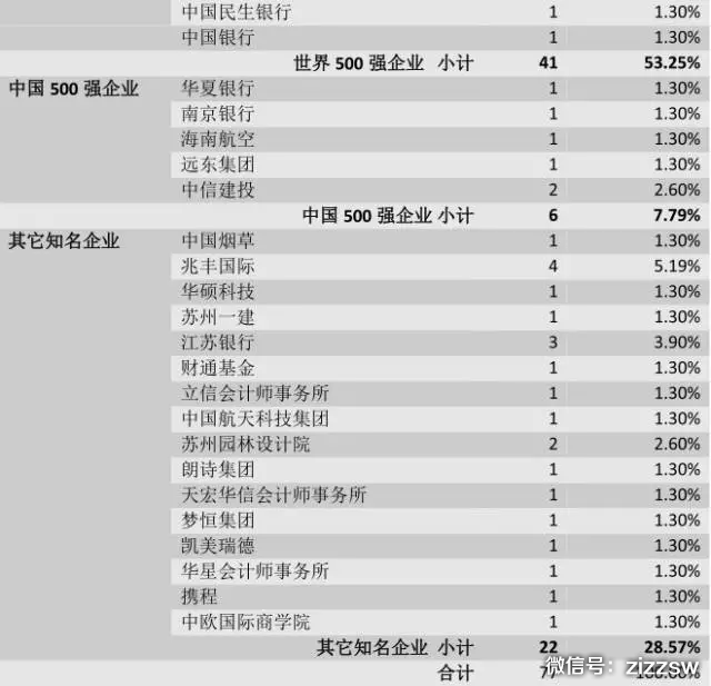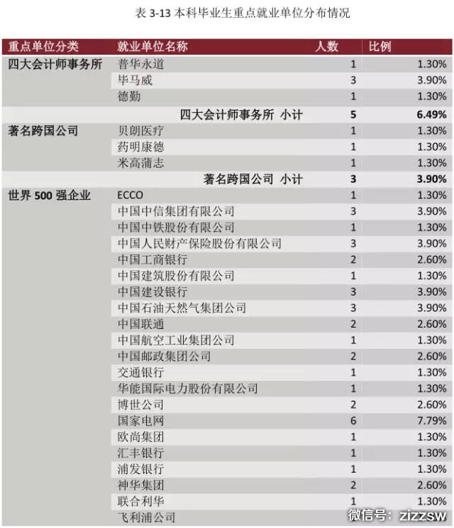 近20%的本科毕业生则选择直接就业,其中6.49%进入四大会计律师事务所,53.25%进入世界500强。
