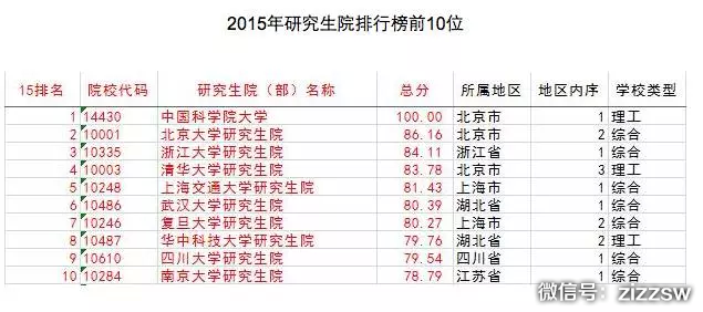 另外,中国科学院大学的研究生教育水平全国居首,北京大学、浙江大学、清华大学和上海交通大学分列二至五位。(参考武汉大学中国科学评价研究中心、中国教育质量评价中心联合中国科教评价网发布的《中国研究生教育及学科专业评价报告2015-2016》)