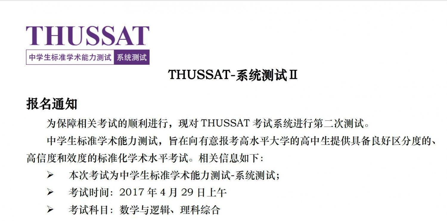 ①符合报考条件的考生请在规定的时间内登陆报名网站(www.thussat.com)进行报名。