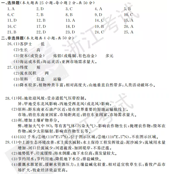 参加浙江省2018年4月学考选考的同学们,地理科目试题和参考答案出来啦!快来对答案吧。
