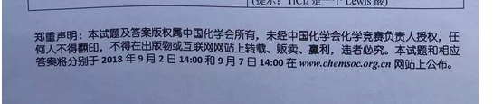 根据中国化学会声明,2018年第32届中国化学奥林匹克(初赛)试题和相应答案分别于2018年9月2日14:00和9月7日14:00在www.chemsoc.org.cn网站公布。自主选拔在线网站届时会及时更新本次考试答案,请持续保持关注。