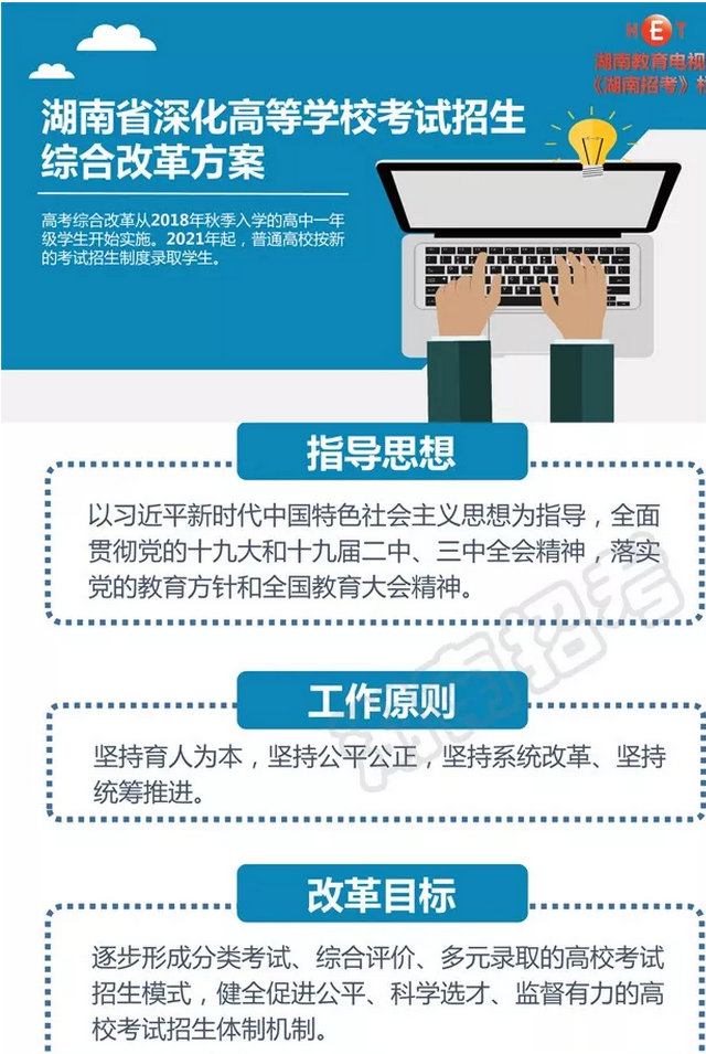 2019年4月23日,《湖南省高考综合改革实施方案》发布,明确湖南省高考综合改革从2018年秋季入学的高中一年级学生开始实施。也就是说,2021年将按新高考制度录取新生!为了让大家更好地理解新高考政策,为大家精心准备了长图解读,供参考。