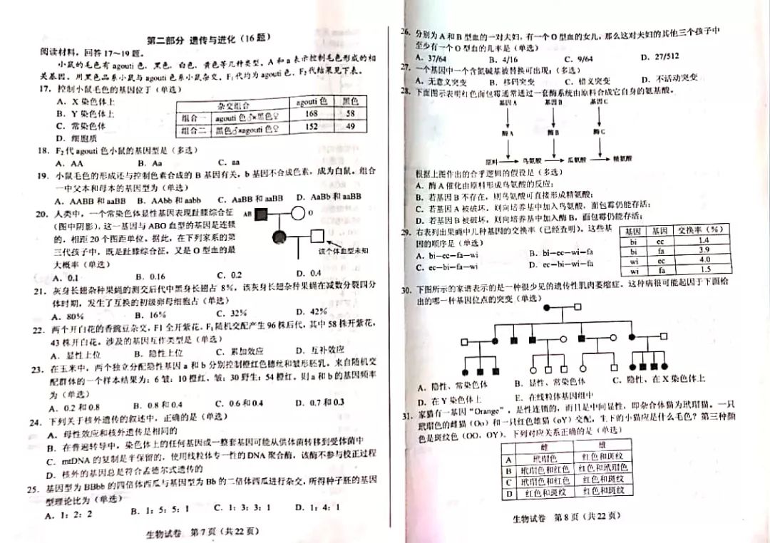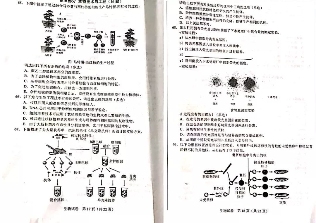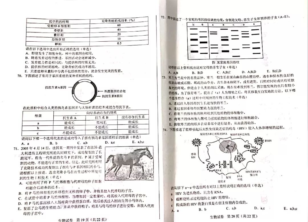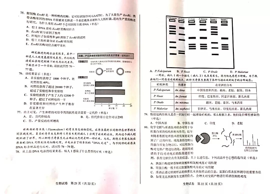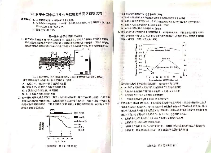 陕西省2019年中学生生物学竞赛预赛理论试题2019-04-29