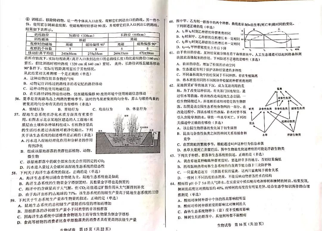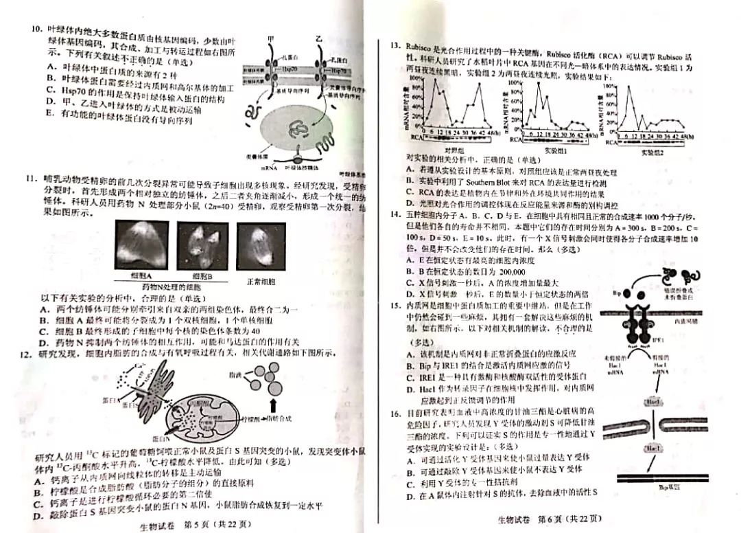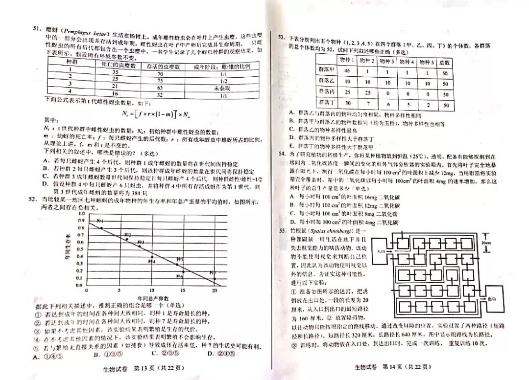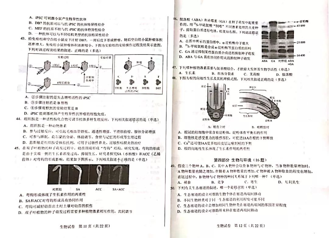 陕西省2019年中学生生物学竞赛预赛理论试题2019-04-29