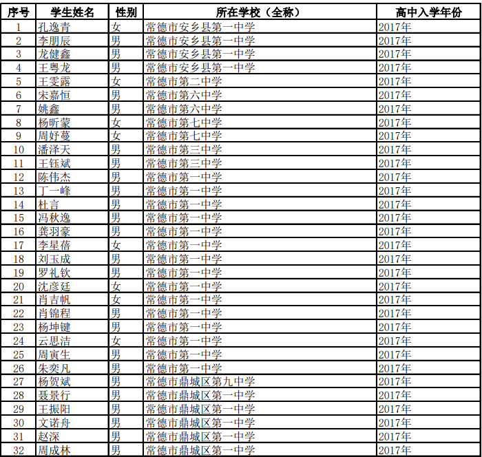 湖南省2019年第33届中国化学奥林匹克(初赛)参赛名单