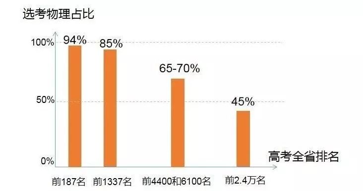 ③前2.4万考生中,选考物理的45%。也就是说,成绩在一本线以上的学生,除去前面说到的全省顶尖学生,还是有一半以上考生没选物理了。