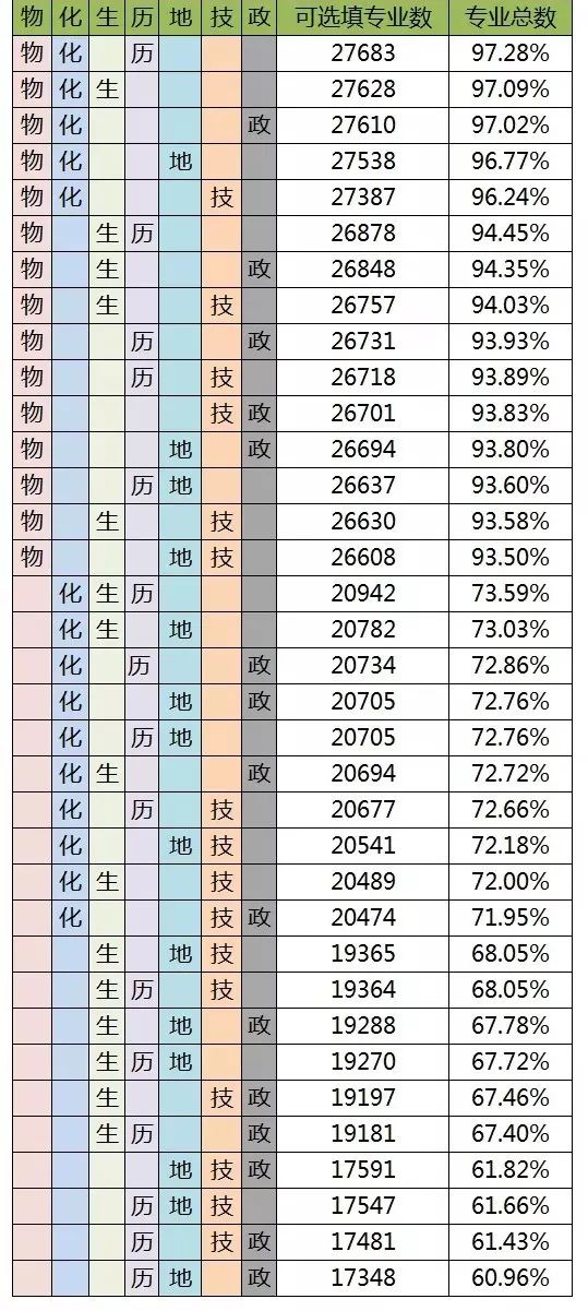 ③一般来说,选择物理,其他2门随意选择,可报专业就涵盖了93.5%以上。