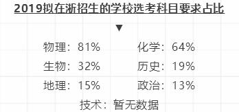 根据浙江省教育考试院的数据统计,2019拟在浙招生的学校选考科目要求占比已经出炉。