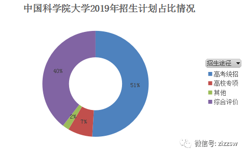 除了高考统招外,综合评价招生名额占比也很高。2019年国科大综合评价招收约158人,占总名额的40%,几乎与高考统招人数持平。