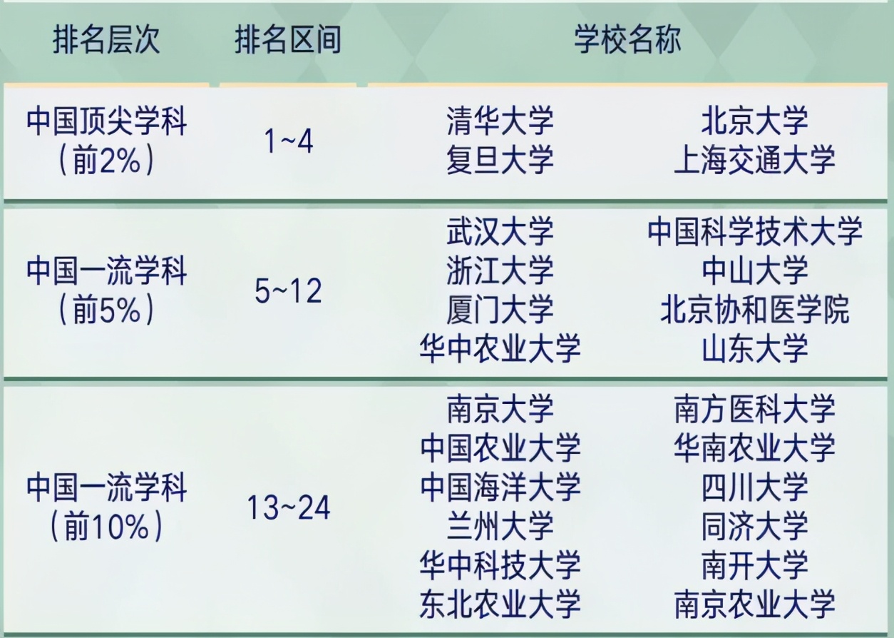 中国农业大学、南京大学、中国科学技术大学、武汉大学、华中农业大学第四轮学科评估结果:A