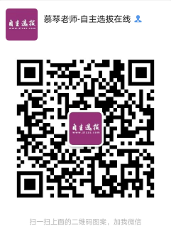 扫描下方二维码,可添加自主选拔在线慕琴老师微信好友,备注:省市+高考年份+文/理/选科+taca,慕琴老师会定期统一拉大家入群,请耐心等待!