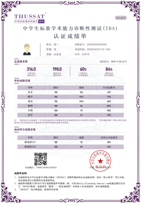 目前诊断性测试(TDA)线上机考认证成绩单已开放申请,学科能力综合测试(TACA)认证成绩单开放申请时间请留意后续信息发布。