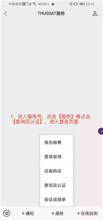 方式一:通过微信服务号“THUSSAT服务”菜单“服务”-“查询及认证”获取