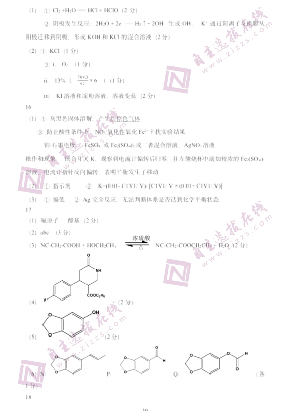 2021年高考北京卷化学真题答案