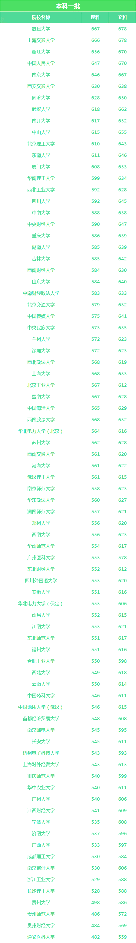 贵州省2021年高考本科一批预估投档分数线(文史)