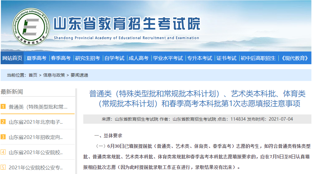 山东2021高考生可以进行今年第二次志愿填报了!普通类(特殊类型批和常规批本科计划)、艺术类本科批、体育类(常规批本科计划)、春季高考本科批第1次志愿填报都在今天上午9:00开启!