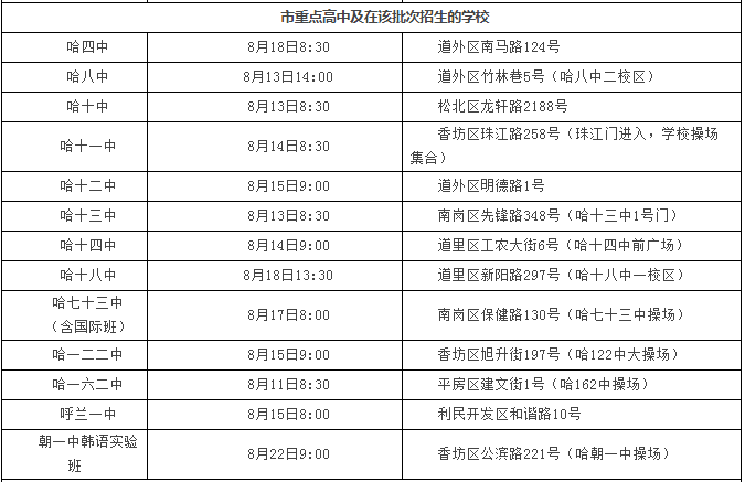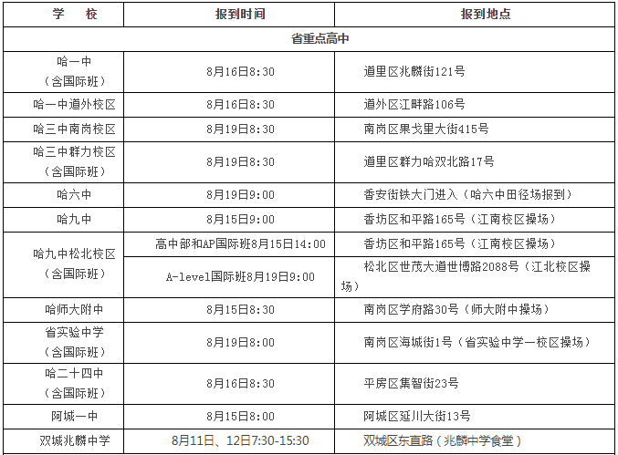 为了方便新高一学生了解报到时间和地点,本文自主选拔在线团队收集整理了黑龙江哈尔滨市2021年重点高中、民办高中高一新生报到时间及地点,供大家参考!