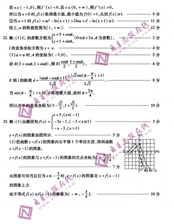 立即下载:内蒙古包头市2022届高三上学期起点调研考试理科数学答案