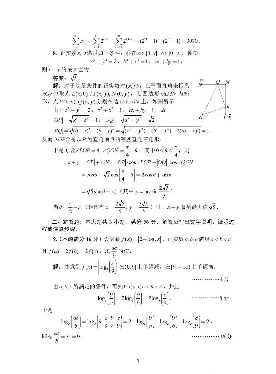 2021年全国高中数学联赛A1卷试题答案(江苏、河南)