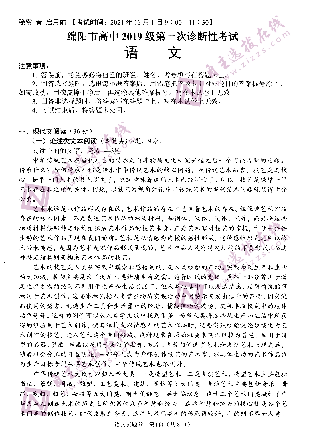 自主选拔在线团队收集整理了四川绵阳市2022届第一次诊断性考试语文试题,供大家参考。