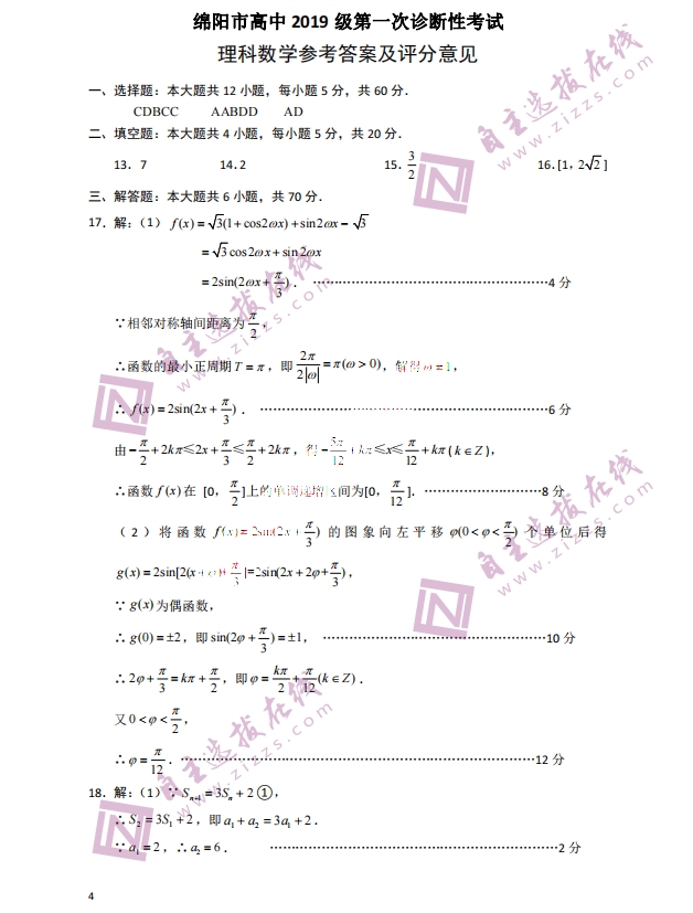 自主选拔在线团队收集整理了四川绵阳市2022届第一次诊断性考试理科数学试题和答案,供大家参考。