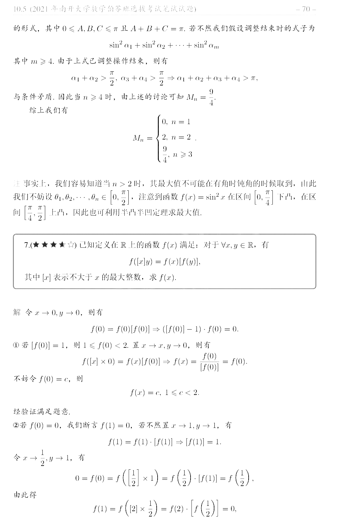 南开大学2021年数学伯苓班选拔考试试题解析