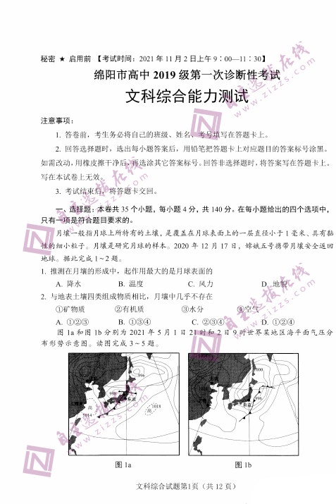 自主选拔在线团队收集整理了四川绵阳市2022届第一次诊断性考试文科综合试题和答案,供大家参考。