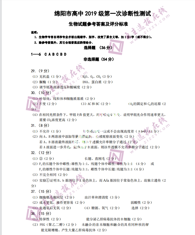 自主选拔在线团队收集整理了四川绵阳市2022届第一次诊断性考试理科综合试题和答案,供大家参考。