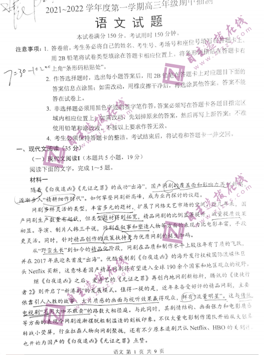 徐州市2022年高三期中考试于2021年11月11开考,此次期中考试受到许多考生的关注,为帮助顺利进行期中考试,自主选拔在线团队收集到此次考试的试题,供大家参考!