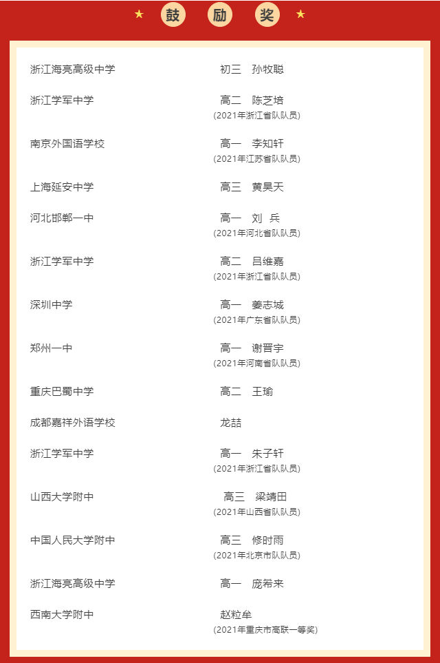 2021年11月13-14日,第四届“刘徽杯”数学竞赛活动如期举办。经组委会专家阅卷评审,现将获奖者名单及成绩公示。