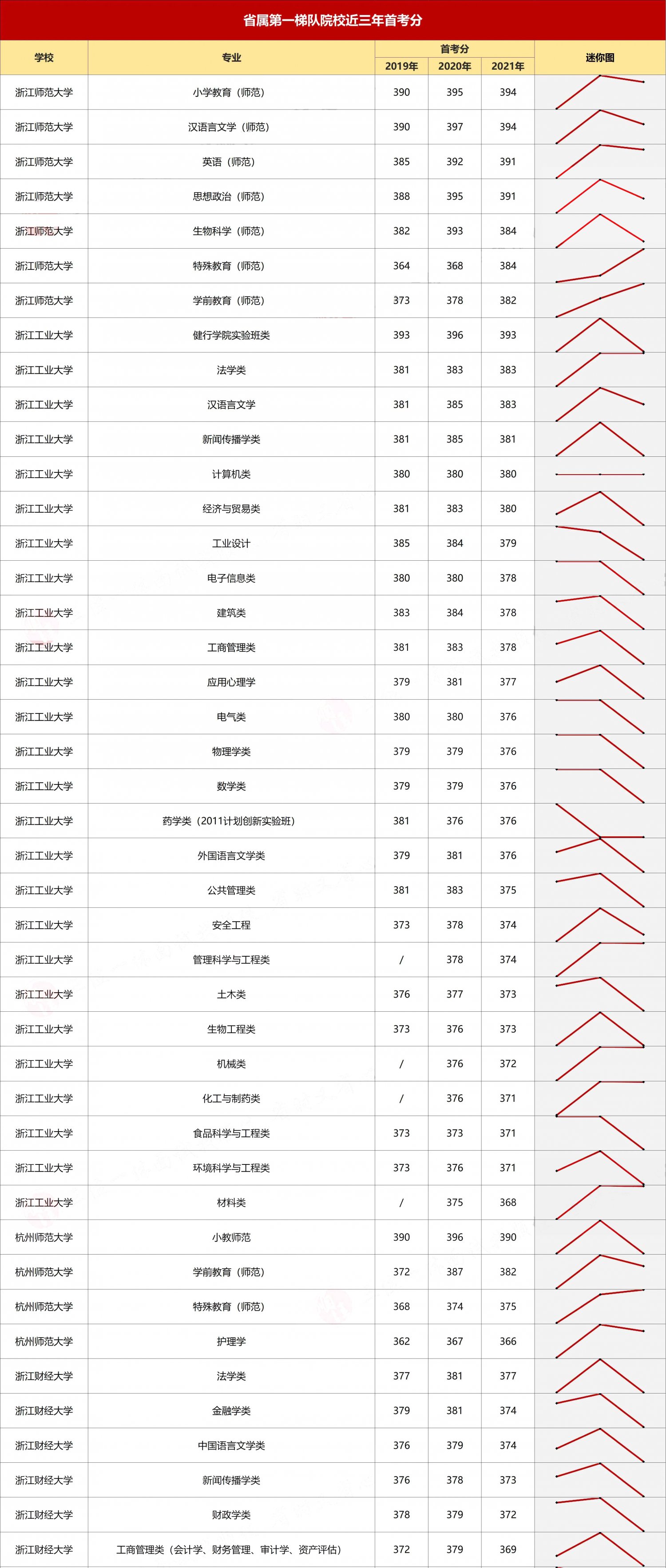 省属各梯队院校首考最低分