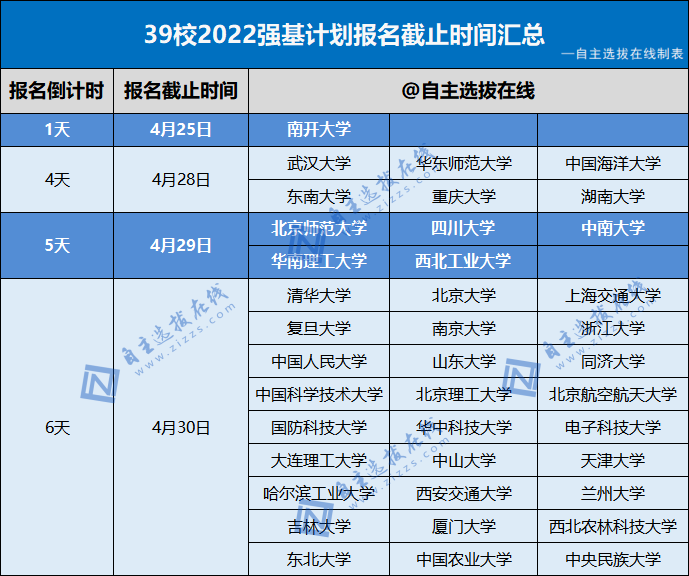 近30所高校集中在4月30日截止报名,但少数院校截止时间有所不同,考生务必注意,详情如下表: