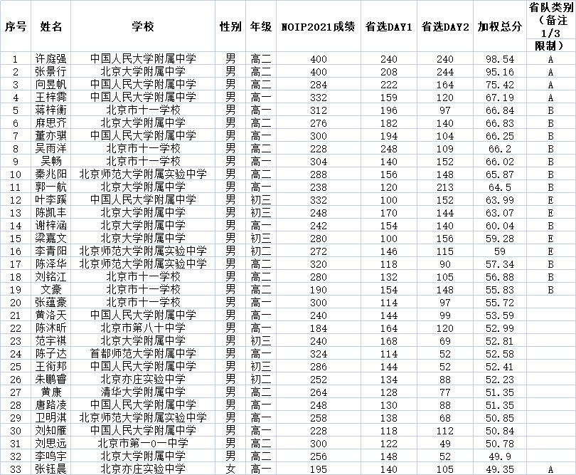 现对NOI2022北京队入选名单进行公示如下: